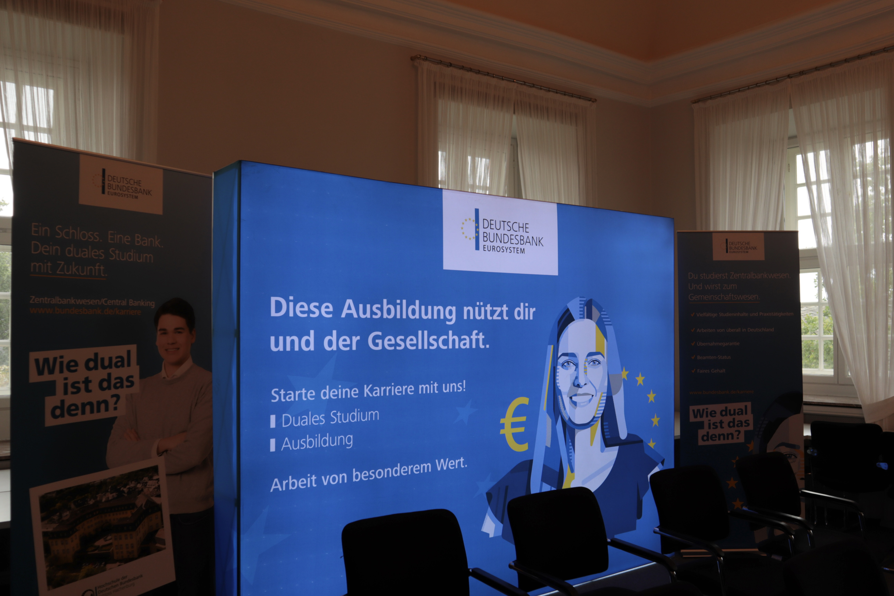 An Informationsständen und über Mitmachaktionen informierten Bundesbankbeschäftigte nicht nur über die Kernleistungen der deutschen Zentralbank, darunter das Thema „Falschgeldprävention“, sondern auch über Karrieremöglichkeiten bei der Deutschen Bundesbank, die seit nunmehr über 45 Jahre die Trägerin der Hochschule ist. Neben dem vielfältigen Ausbildungs- und Studienangebot der Bundesbank, stand hierbei der Bachelorstudiengang „Zentralbankwesen / Central Banking“ im Vordergrund und stieß auf großes Interesse. Viele Fragen der Besucherinnen und Besucher drehten sich nicht nur um die Studieninhalte und die Karrieremöglichkeiten, sondern auch um das gemeinsame Leben und Lernen auf dem Campus der Hochschule.